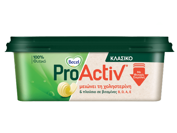 Το Becel ProActiv Κλασικό, ο διατροφικός σύμμαχος …της καρδιάς μας εδώ και 20 χρόνια, περιέχει πρόσθετες φυτικές στερόλες που είναι κλινικά αποδεδειγμένο ότι μειώνουν τη χοληστερίνη.