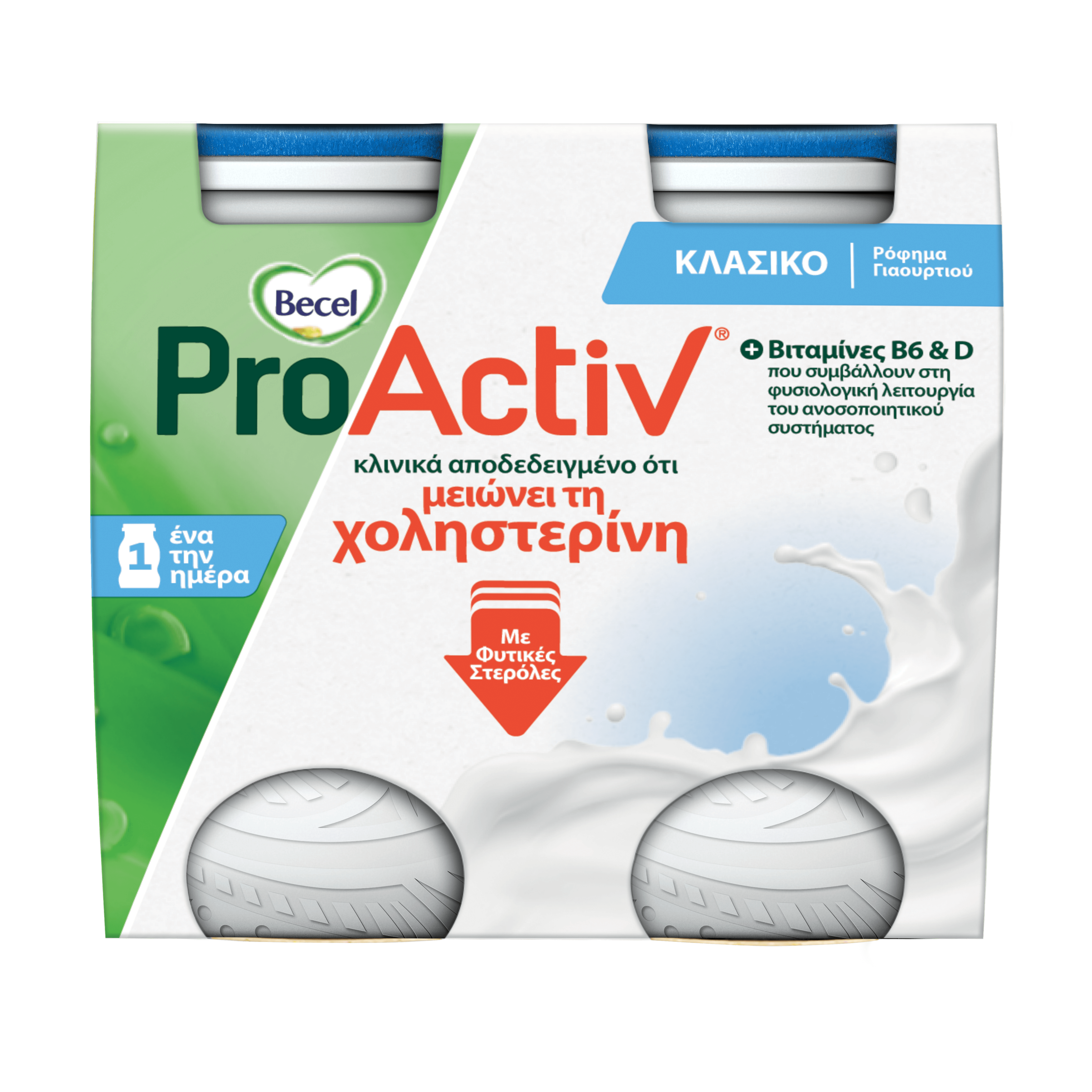 Το ρόφημα γιαουρτιού Becel ProActiv, σε κλασική γεύση, με προσθήκη φυτικών στερολών και βιταμινών, θα σας βοηθήσει να μειώσετε εύκολα και γευστικά τη χοληστερίνη σας.