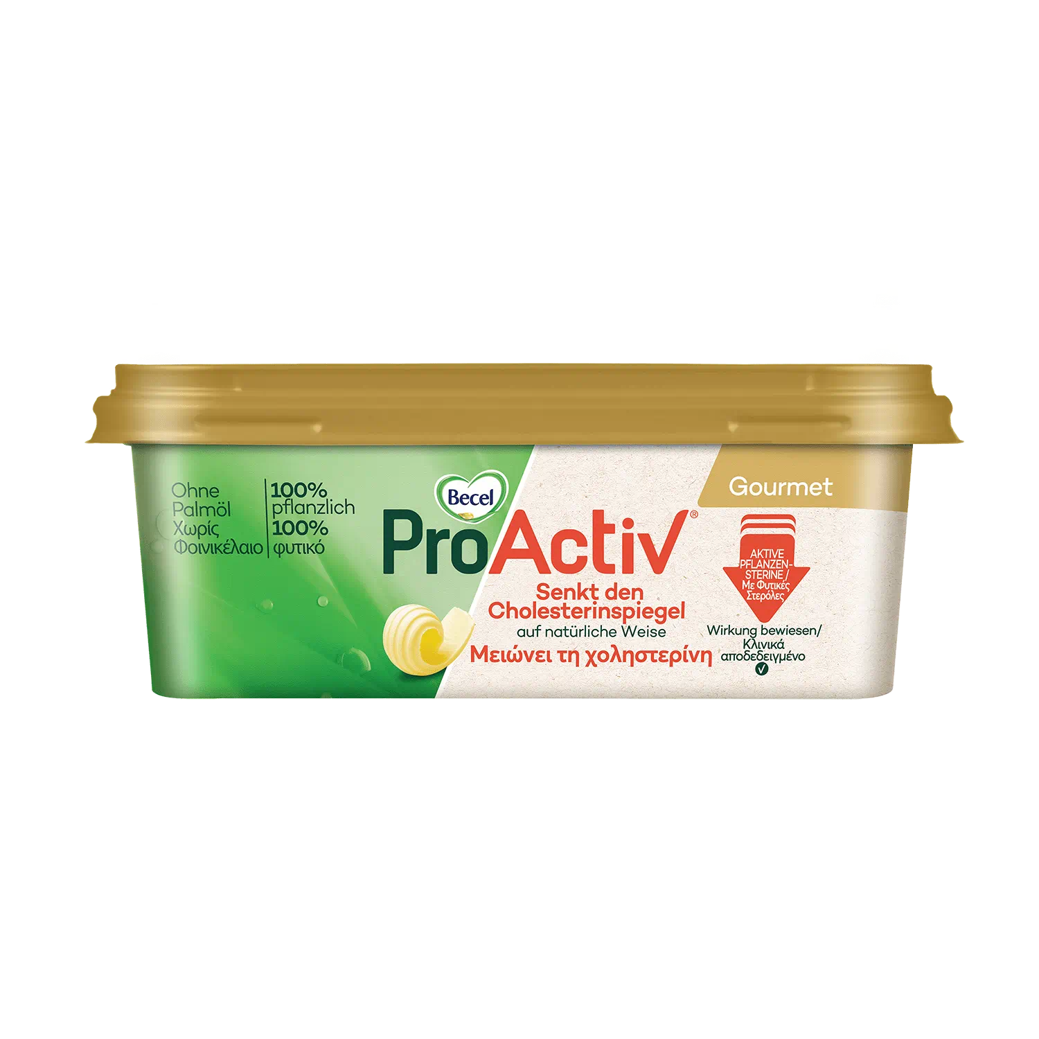 Το Becel ProActiv Gourmet μειώνει τη χοληστερίνη με φυσικό τρόπο* και έχει πιο πλούσια γεύση και περισσότερα λιπαρά.