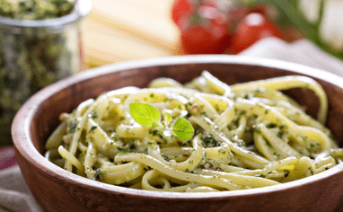 Vous avez un faible pour les pâtes ? Essayez donc cette succulente variante des célèbres pâtes au pesto italiennes. Nous y avons ajouté quelques légumes pour encore plus de goût et de plaisir. Ce plat sera prêt en 15 minutes !