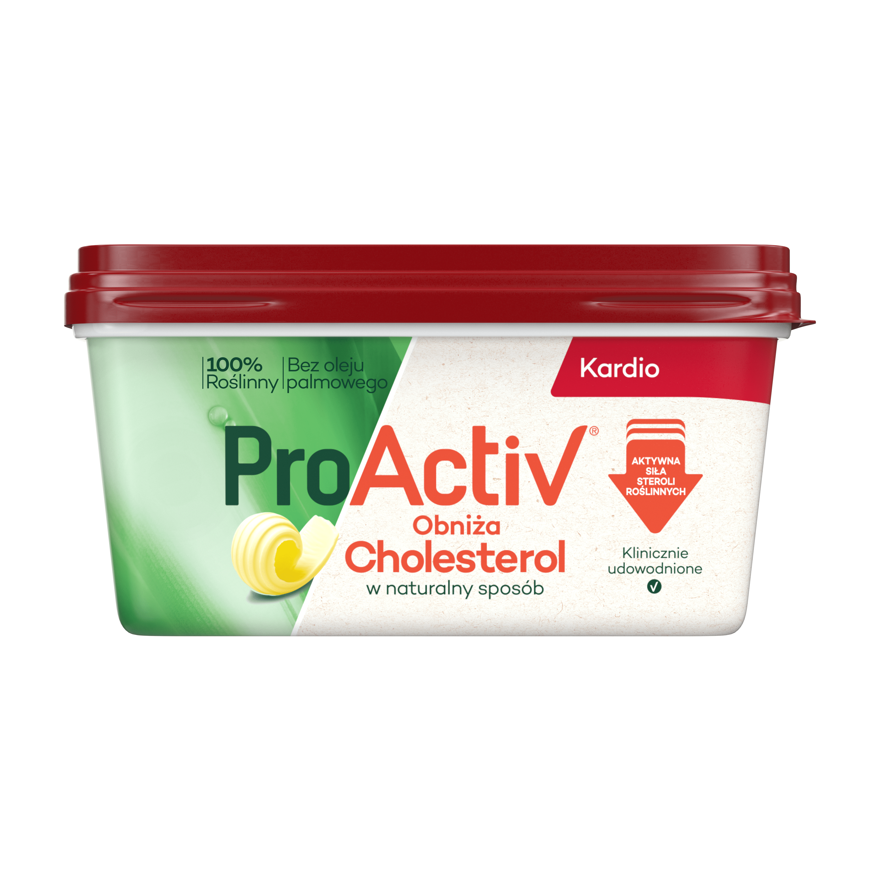 Tłuszcz roślinny do smarowania 35% z dodatkiem steroli roślinnych. ProActiv powstał z myślą o osobach walczących z cholesterolem. Zawarte w nim kwasy tłuszczowe omega-3 pochodzą z oleju lnianego, natomiast kwasy omega-6 pochodzą z oleju słonecznikowego. Zawiera sterole roślinne, które jak zostało klinicznie udowodnione hamują wchłanianie cholesterolu z przewodu pokarmowego do krwi. 100% roślinny skład, bez oleju palmowego!