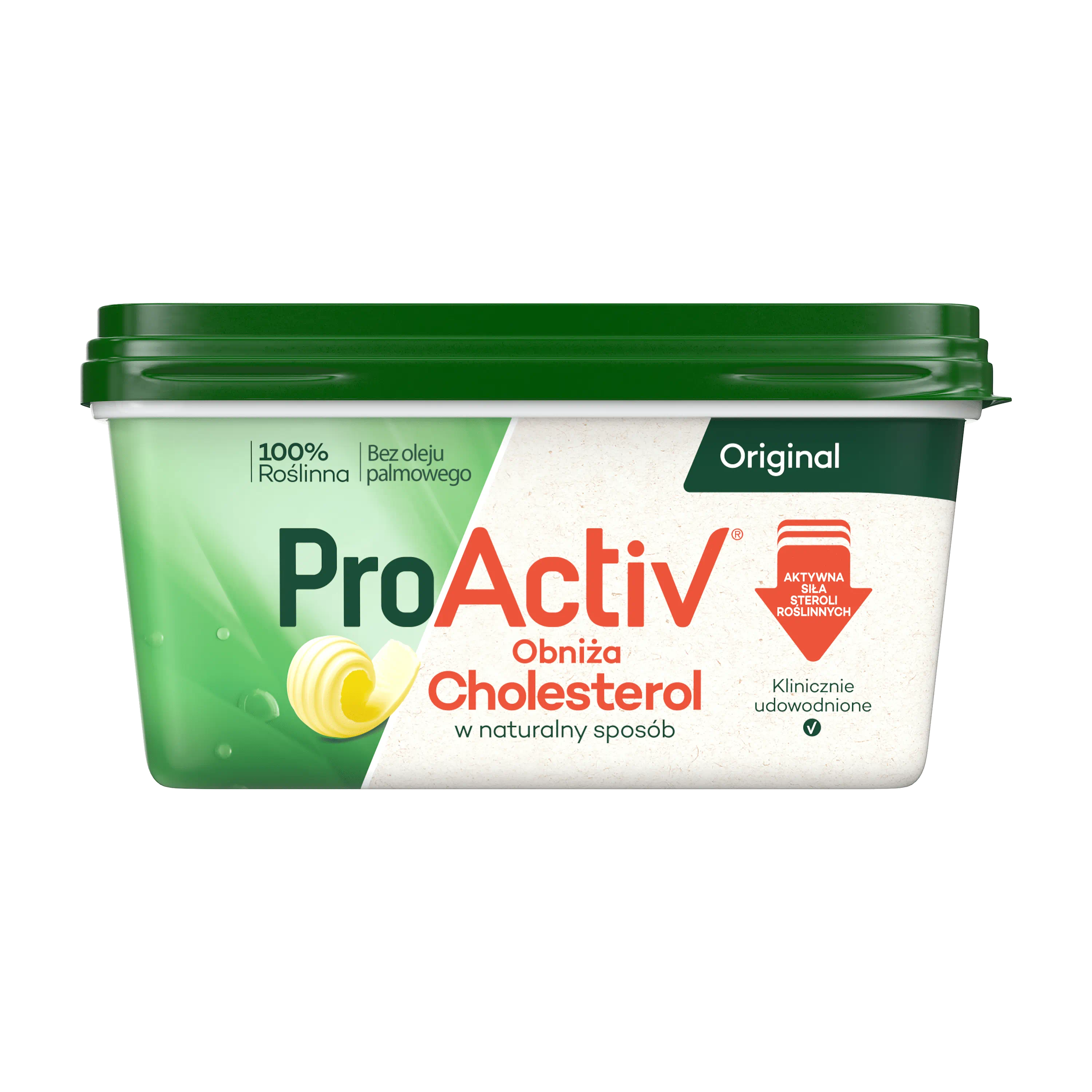 Tłuszcz roślinny do smarowania 35% z dodatkiem steroli roślinnych. ProActiv powstał z myślą o osobach walczących z cholesterolem. Zawarte w nim kwasy tłuszczowe omega-3 pochodzą z oleju lnianego, natomiast kwasy omega-6 pochodzą z oleju słonecznikowego. Zawiera sterole roślinne, które jak zostało klinicznie udowodnione hamują wchłanianie cholesterolu z przewodu pokarmowego do krwi. 100% roślinny skład, bez oleju palmowego!